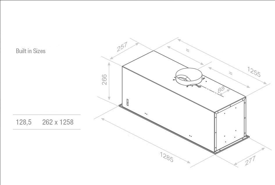 Requires 150mm ducting (max.effective length 10m)